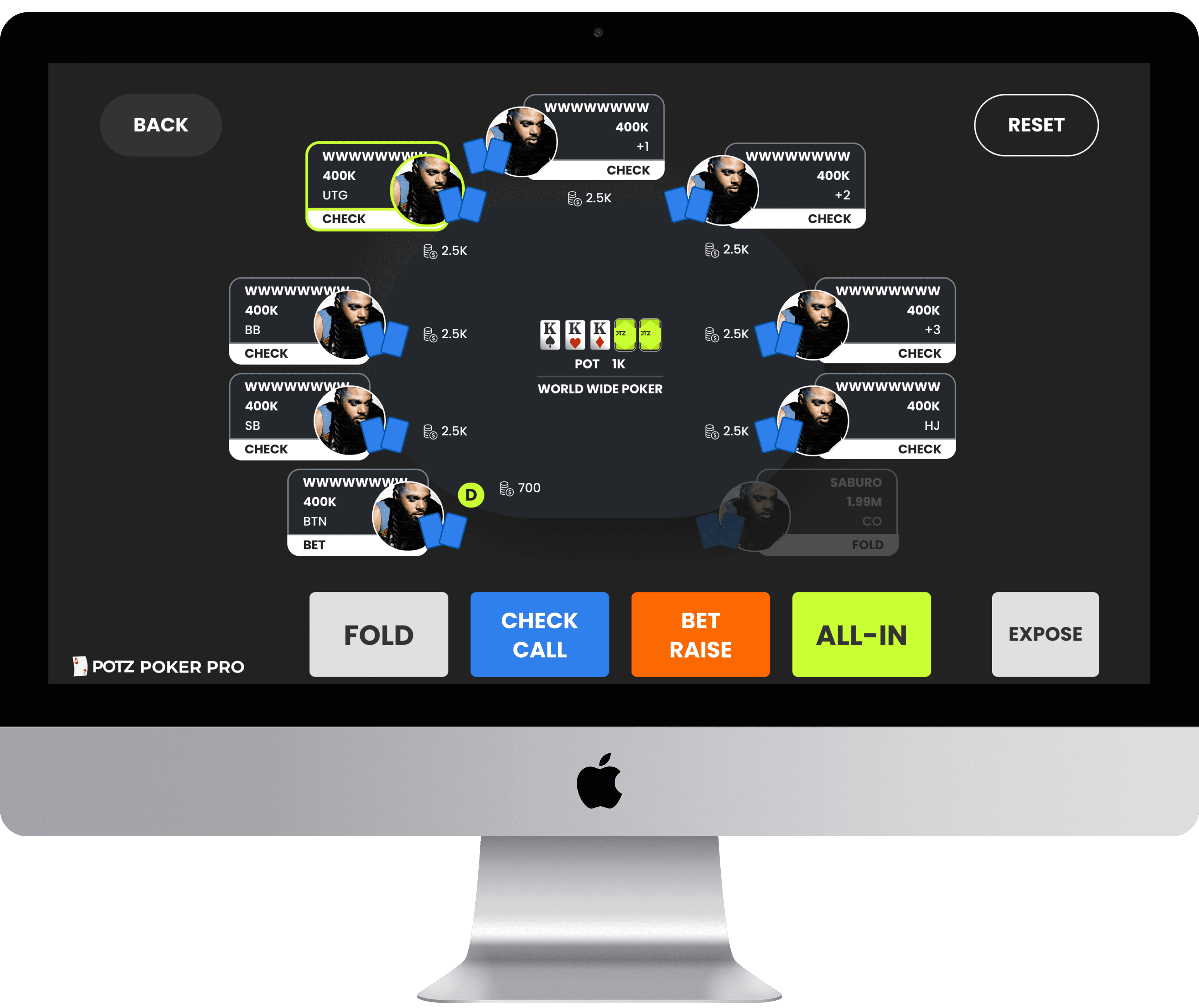 RFIDポーカー配信システム「POTZ POKER PRO」のタブレット端末UI・配信ドロップレイアウトを刷新。ディーラーとオペレーターがストレスなく使えるインターフェースを、課題定義からビジュアル設計まで単独でやり切りました。